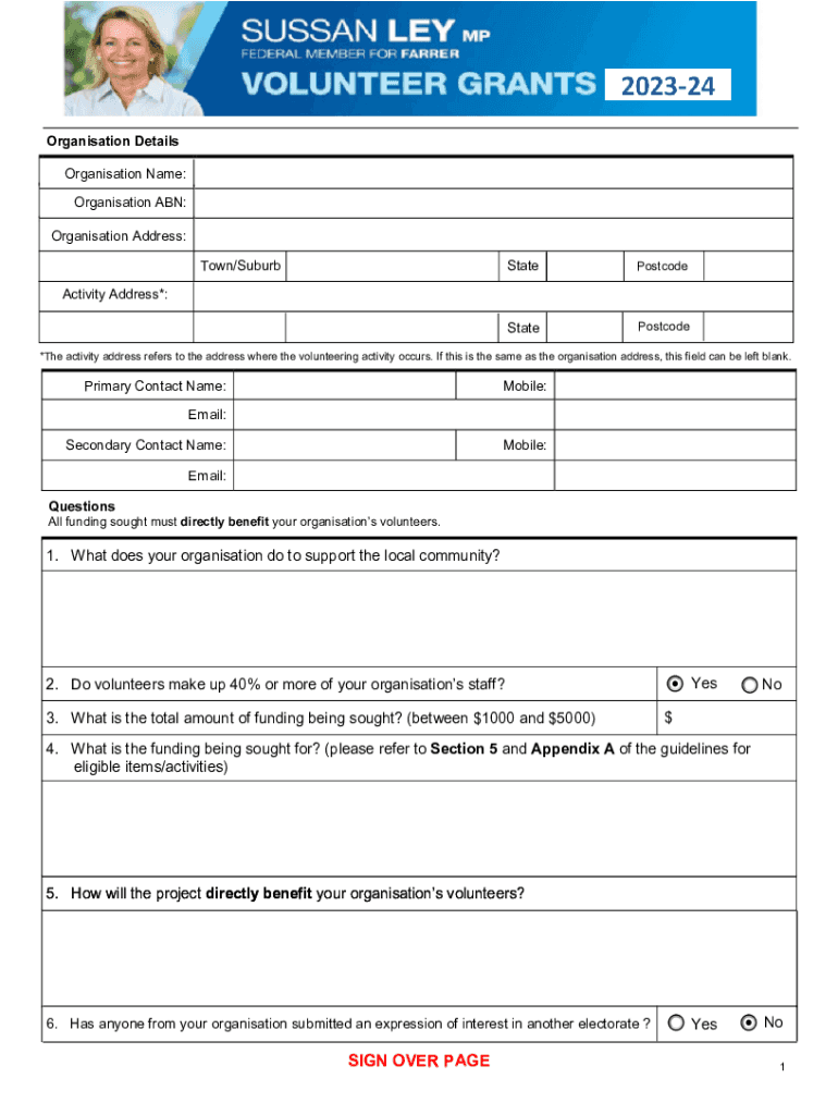 Organization Details Organization Name: Organization ABN: Organization Address: Town/SuburbStatePostcodeStatePostcodeActivity Address*:*The activity address refers to the address where the volunteering