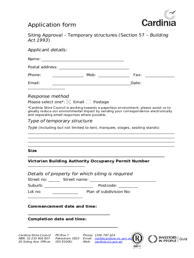What is Building - - POPE - Siting of Temporary Structures - July 2021 Form?