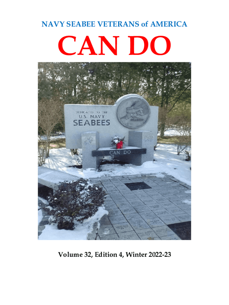 NAVY SEABED VETERANS of AMERICAN Volume 32, Edition 4, Winter 202223Cover: Seabed Memorial, Rhode Island Veterans Cemetery, Peter, Rhode Island. Island X1Davisvillean organization of retired Seabeds,