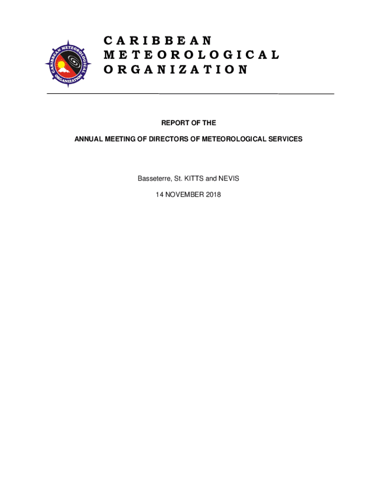 CARIBBEAN METEOROLOGICAL ORGANIZATIONREPORT OF THE ANNUAL MEETING OF DIRECTORS OF METEOROLOGICAL SERVICES Basseterre, St. KITS and NEVIS 14 NOVEMBER 2018DMS2018 Report, page 1 INTRODUCTION 1.1 At