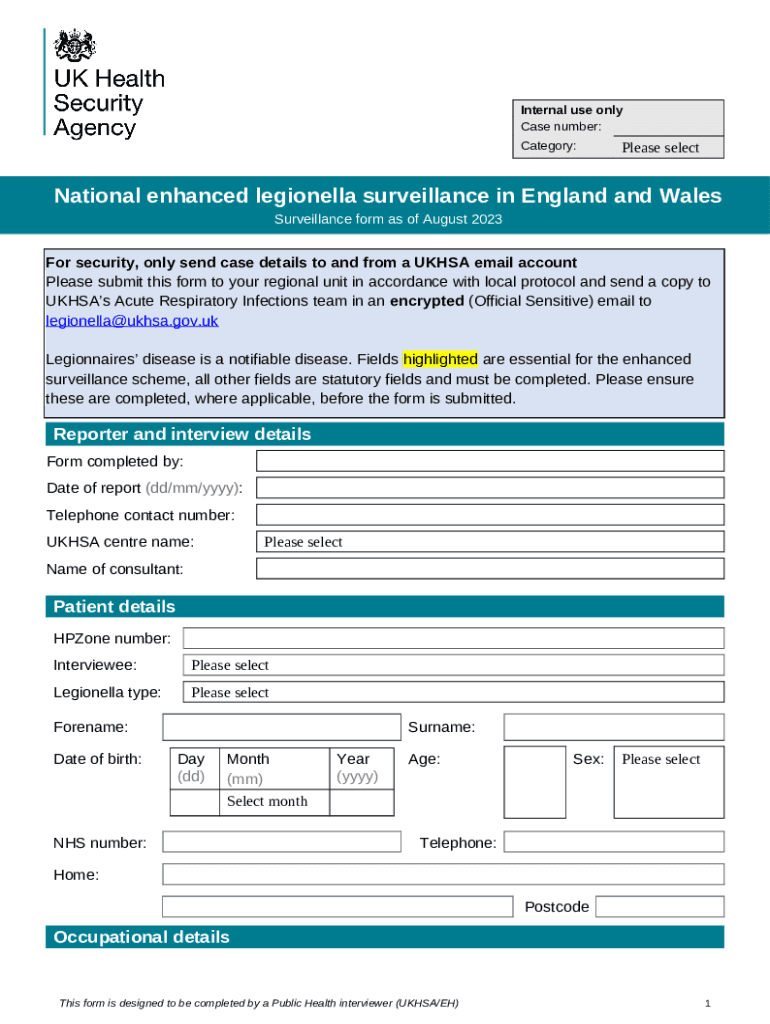 Instructions for the form Surveillance : national enhanced Legionella ...