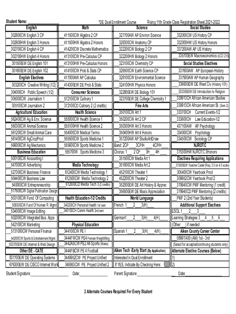 Student Name: ___ English ___302600CW English 3 CP ___302600HW English 3 Honors ___302700CW English 4 CP ___302700HW English 4 Honors ___ 301500EW DE English 101 ___ 301600EW DE English 102 English