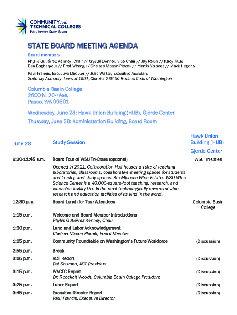 STATE BOARD MEETING AGENDA Board members Phyllis Gutierrez Kenney, Chair // Crystal Donner, Vice Chair // Jay Reich // Lady Titus Ben Bagherpour // Fred Wang // Chelsea MasonPlacek // Martin Valdez