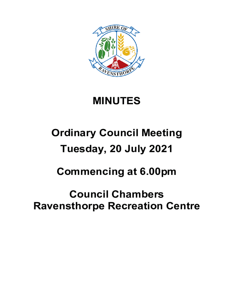 MINUTES Ordinary Council Meeting Tuesday, 20 July 2021 Commencing at 6.00pm Council Chambers Ravensthorpe Recreation CentreSHIRE OF RAVENSTHORPE Minutes for the Ordinary Meeting of Council to be held