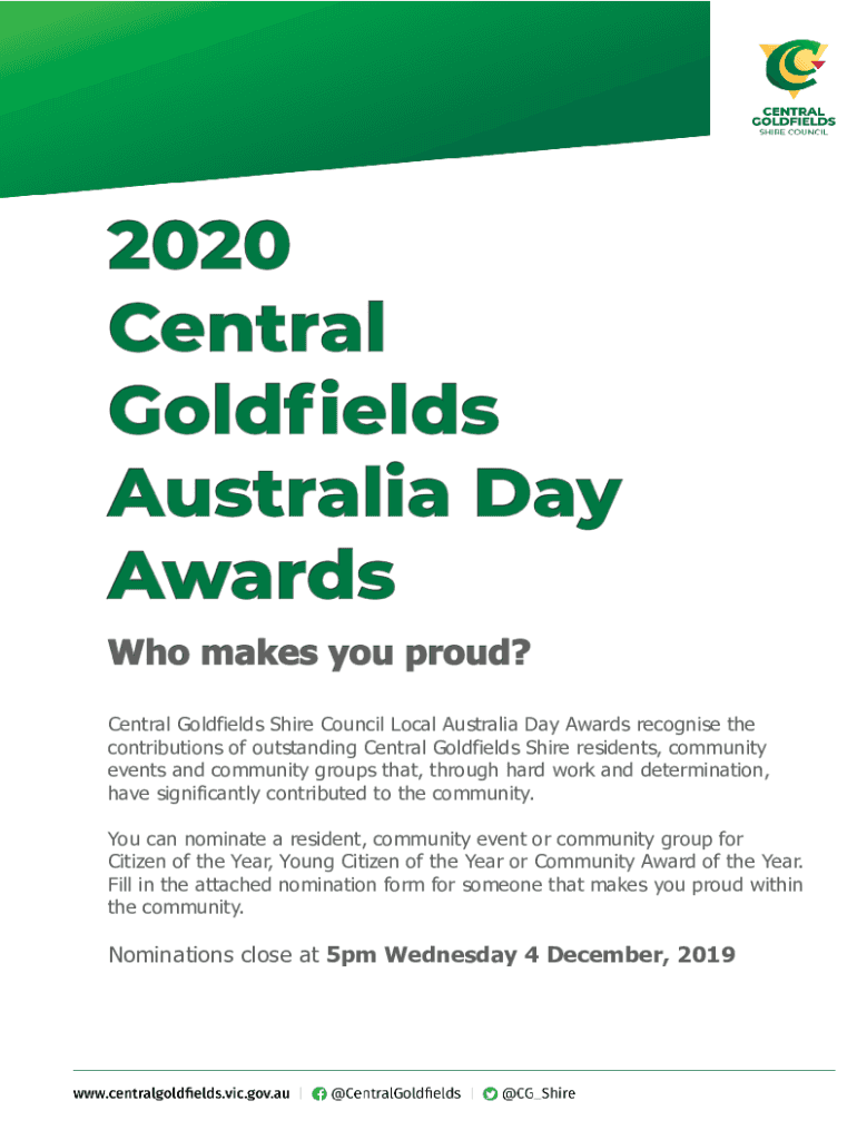 Central Goldfields Shire Council Local Australia Day Awards recognize the contributions of outstanding Central Goldfields Shire residents, community events and community groups that, through hard
