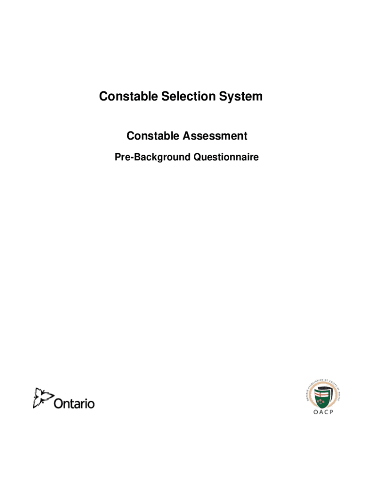 Constable Selection System Constable Assessment Background QuestionnairePreBackground QuestionnaireInstructions Please complete the following questionnaire. Place an X: in the box before the correct