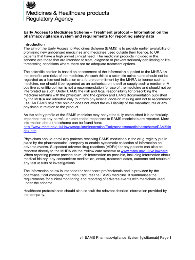 Early Access to Medicines Scheme Treatment protocol Information on the pharmacovigilance system and requirements for reporting safety data Introduction The aim of the Early Access to Medicines Scheme