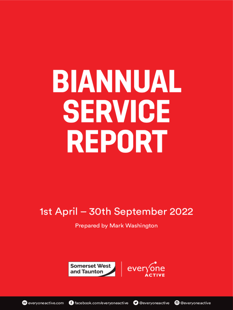 BIANNUAL SERVICE REPORT 1st April 30th September 2022 Prepared by Mark Washingtoneveryoneactive.comfacebook.com/everyoneactive@everyoneactive@everyoneactiveCONTENTS 1. Service update32. Customer feedback
