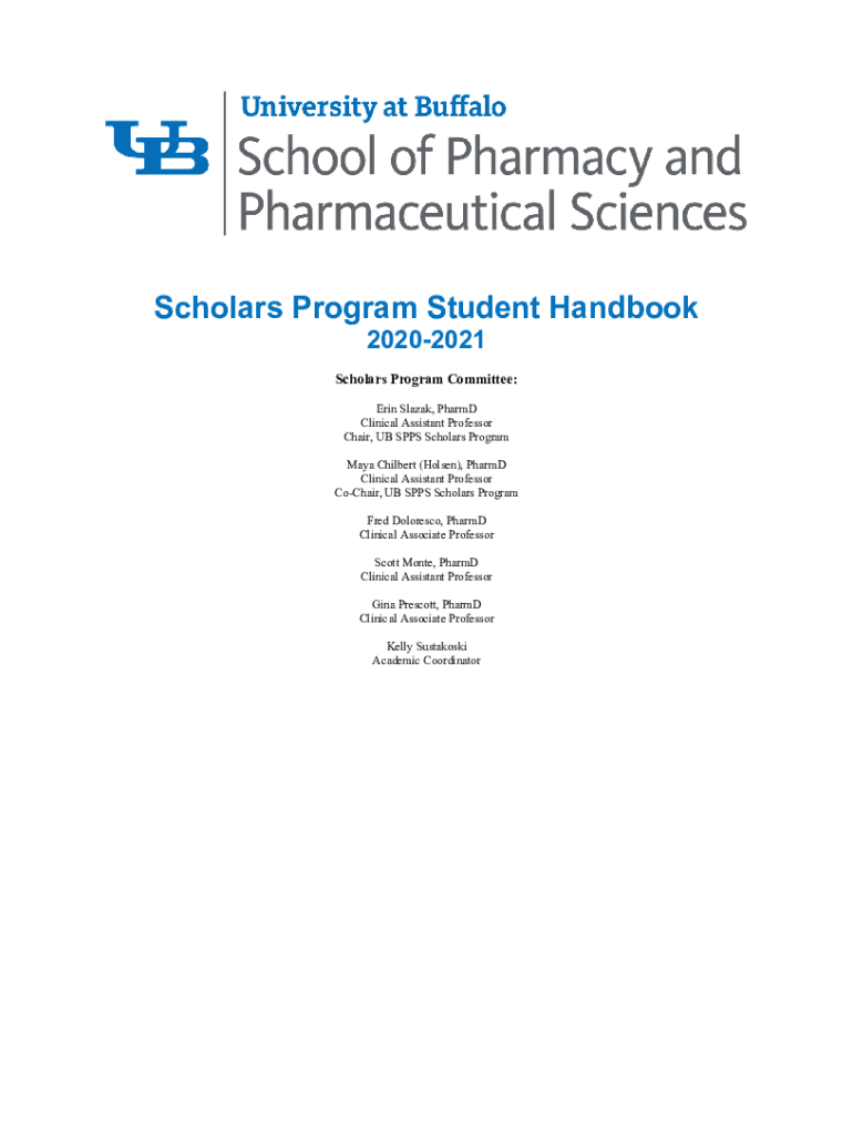Scholars Program Student Handbook 20202021Scholars Program Committee: Erin Plaza, Pharma Clinical Assistant Professor Chair, UP SPAS Scholars Program Maya Hilbert (Holden), Pharma Clinical Assistant
