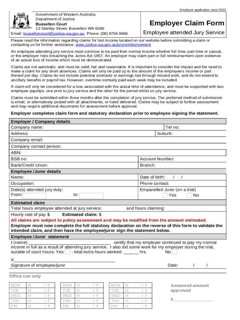 What is Employer Claim for Jury Duty - Busselton. Jury Duty Form?
