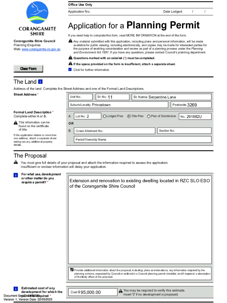 2IFH8VH2QO Application No.:Date Lodged://Application for a 3ODQQLQJ3HUPLW If you need help to complete this form, read MORE INFORMATION at the end of this form.&RUDQJDPLWH6KLUH&RXQFLO 3ODQQLQJ(QTXLULHV