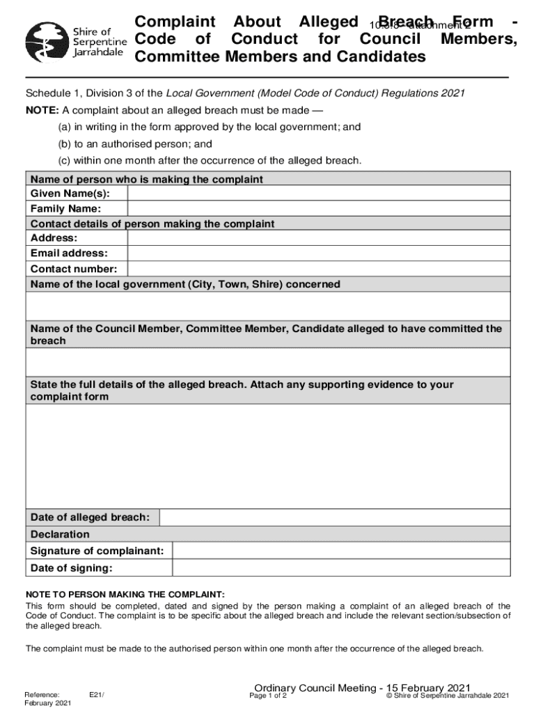 Get the free Complaint About Alleged Breach Form - Code of Conduct ...