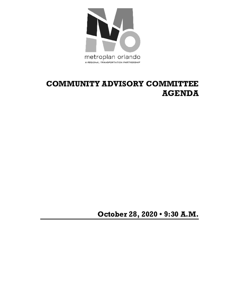 COMMUNITY ADVISORY COMMITTEE AGENDA October 28, 2020 9:30 A.M.COMMUNITY ADVISORY COMMITTEE VIRTUAL MEETING NOTICE DATE: Wednesday, October 28, 2020, at 9:30 a.m. PUBLIC ACCESS: To join the meeting
