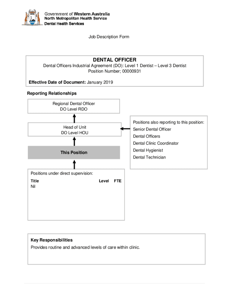 Get the free Dental Officer 00000931 DO Level 1 - Jobs WA