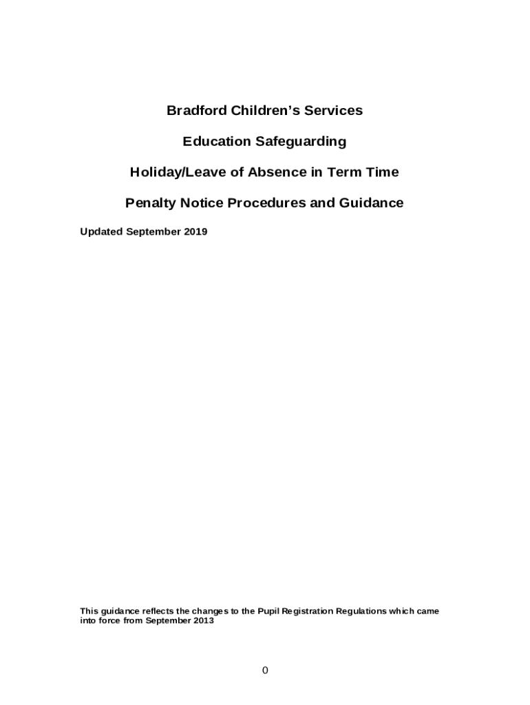 The Leave of absenceguidance for schools - bso bradford gov is a writable document you can get completed and signed for certain reasons. Then, it is provided to the exact addressee in order to provide some details of certain kinds. The completion and signing is possible manually or via an appropriate service e. g. PDFfiller. Such tools help to fill out any PDF or Word file online. It also allows you to edit it according to your needs and put a valid digital signature. Once done, the user sends the Leave of absenceguidance for schools - bso bradford gov to the recipient or several ones by mail or fax. PDFfiller provides a feature and options that make your blank printable. It offers different settings for printing out. It does no matter how you'll deliver a form - in hard copy or by email - it will always look well-designed and firm. In order not to create a new document from scratch every time, make the original form as a template. After that, you will have an editable sample.