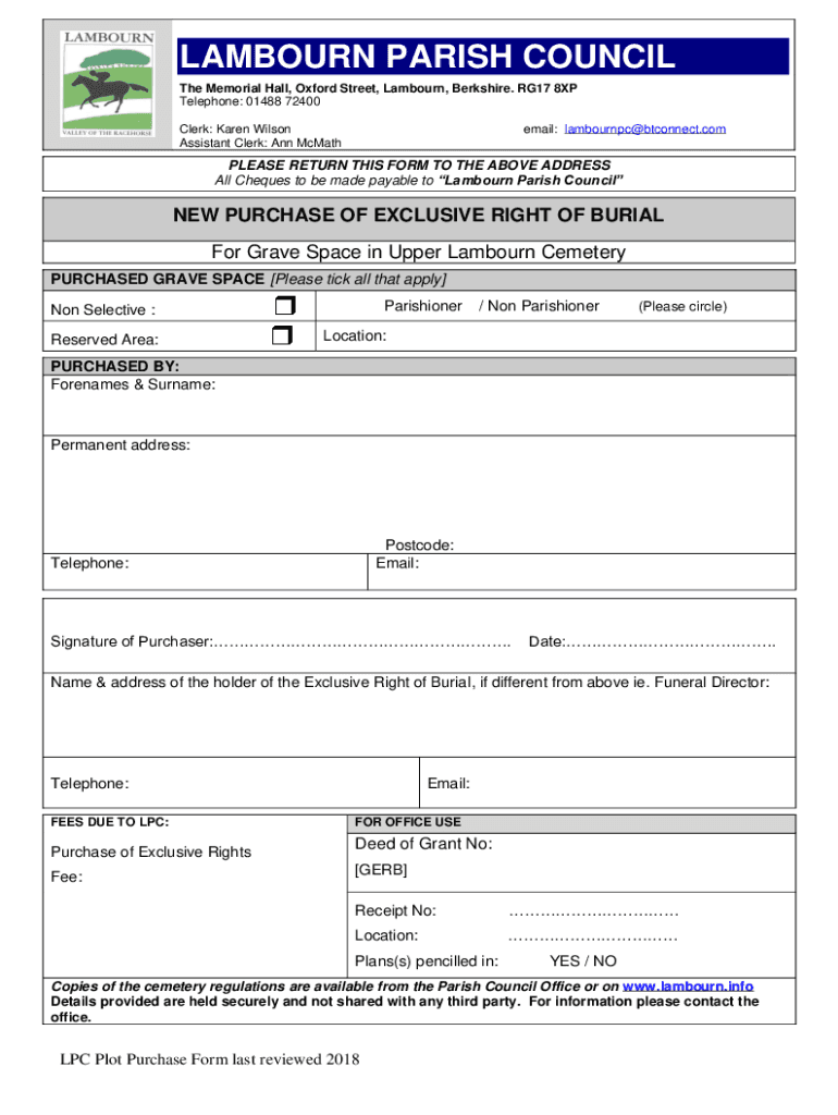 Assistant Clerk: Ann McMathemail: lambournpc@btconnect.comPLEASE RETURN