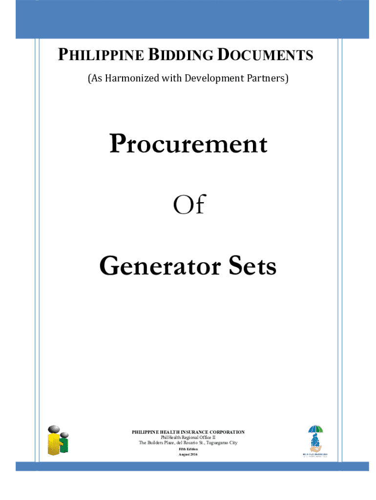 PHILIPPINE BIDDING DOCUMENTS (As Harmonized with Development Partners)Procurement Of Generator SetsPHILIPPINE HEALTH INSURANCE CORPORATION Philomath Regional Office II The Builders Place, Del Rosario