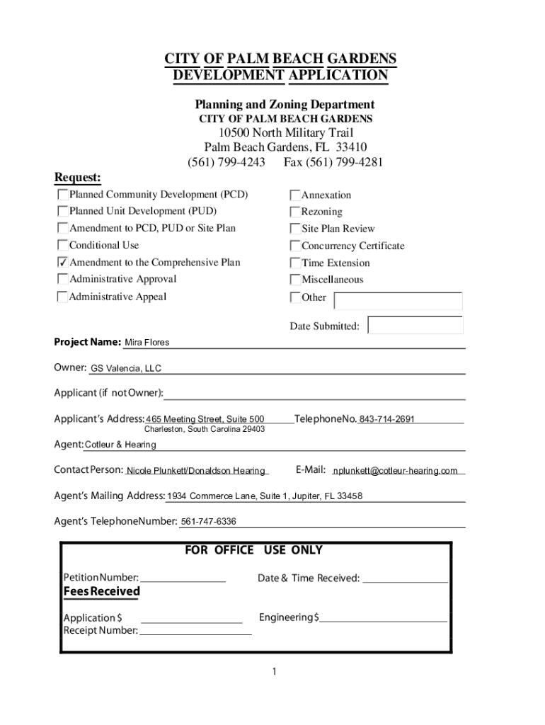 CITY OF PALM BEACH GARDENS DEVELOPMENT APPLICATION Planning and Zoning Department CITY OF PALM BEACH GARDENS10500 North Military Trail Palm Beach Gardens, FL 33410 (561) 7994243 Fax (561) 7994281