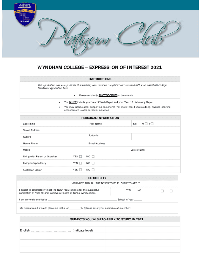 WYNDHAM COLLEGE EXPRESSION OF INTEREST 2021