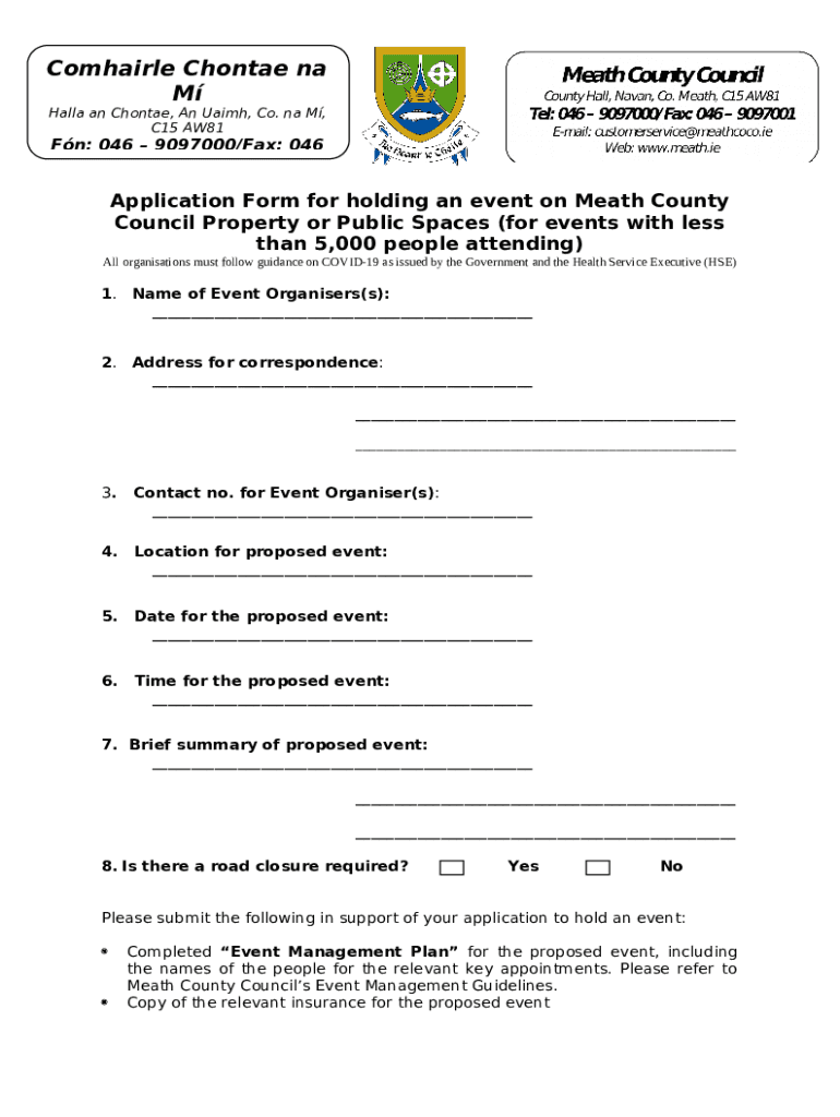Frequently asked questions about the form Application for holding an event on Meath ...