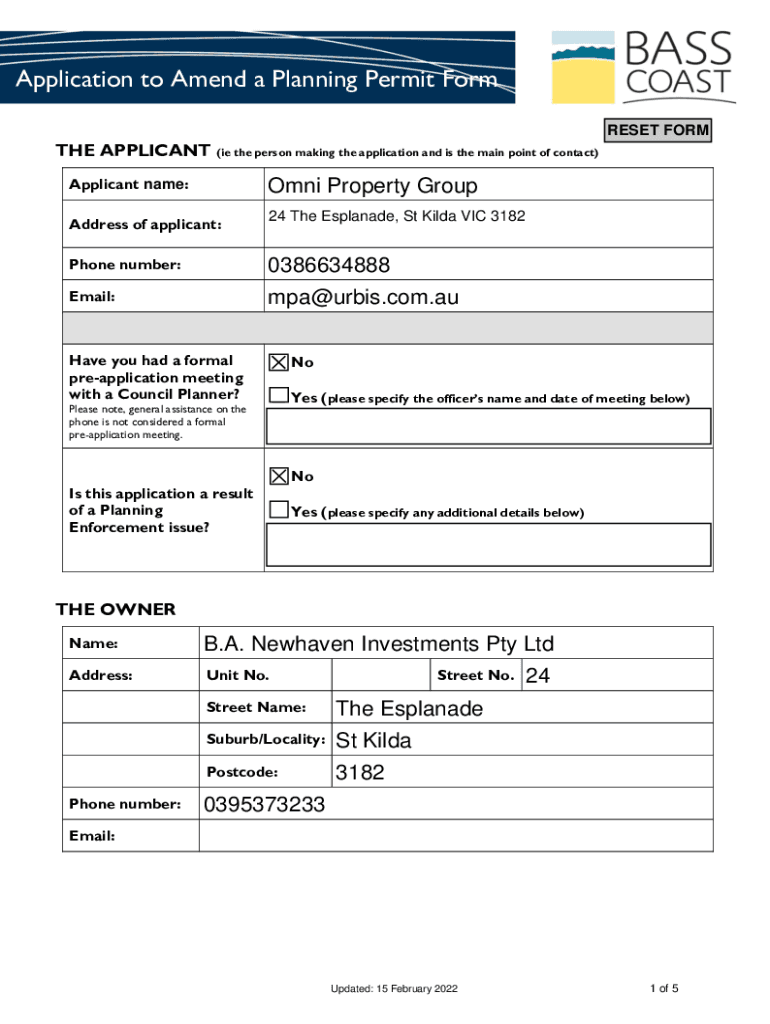 Get the free Apply to change or extend a planning permit