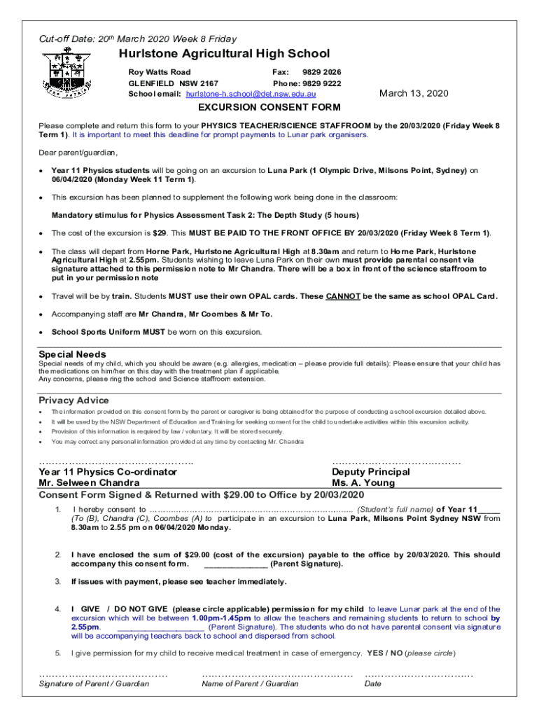 Cutoff Date: 20th March 2020 Week 8 FridayHurlstone Agricultural High School Roy Watts Road Fax: 9829 2026 GREENFIELD NSW 2167 Phone: 9829 9222 School email: hurlstoneh.school@det.nsw.edu.auMarch
