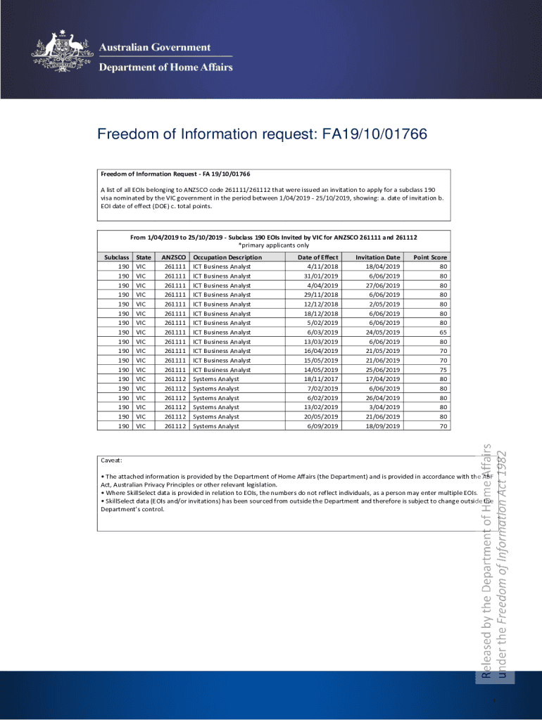 Get the free List of all EOIs belonging to ANZSCO code 261111/261112 that were issued an invitati...