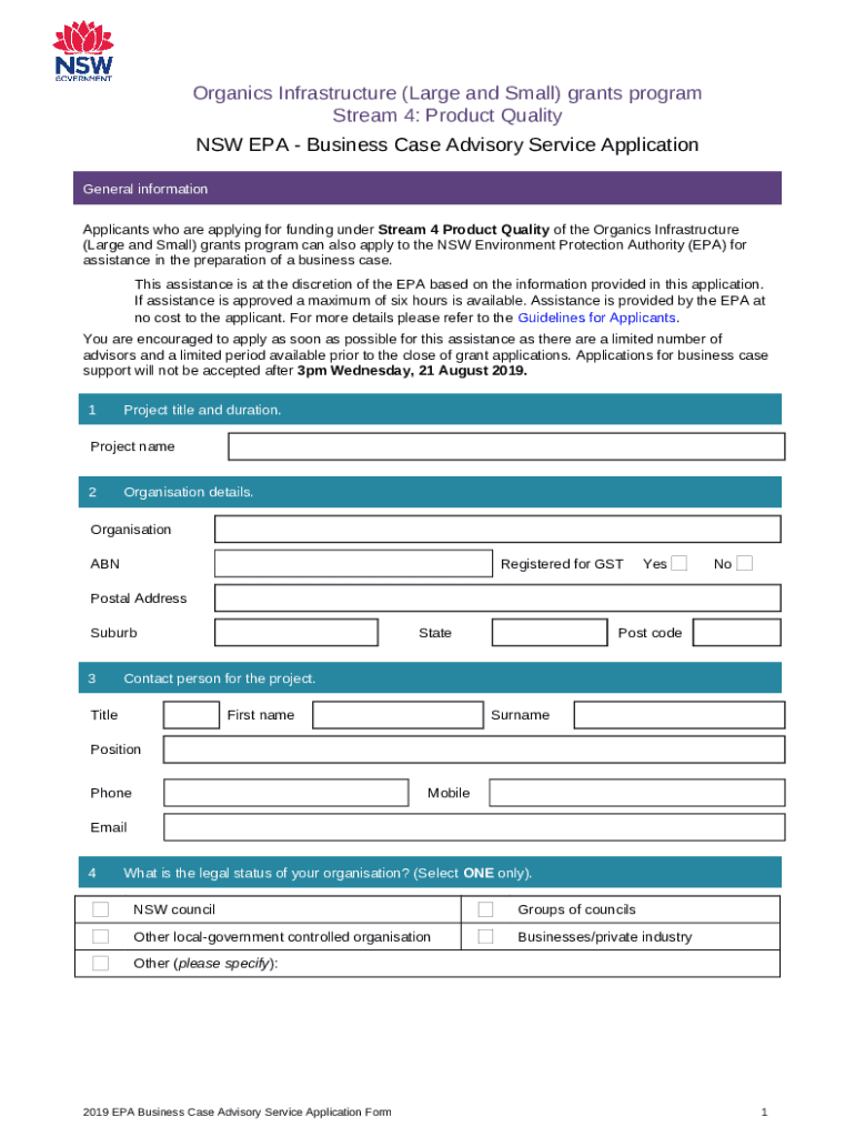 What is Business Case Advisory Application - www environment nsw gov Form?