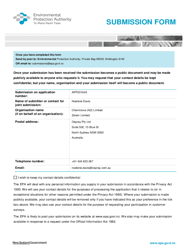 SUBMISSION Hormone you have completed this form Send by post to: Environmental Protection Authority, Private Bag 63002, Wellington 6140 OR email to: submissions@epa.govt.nzOnce your submission has