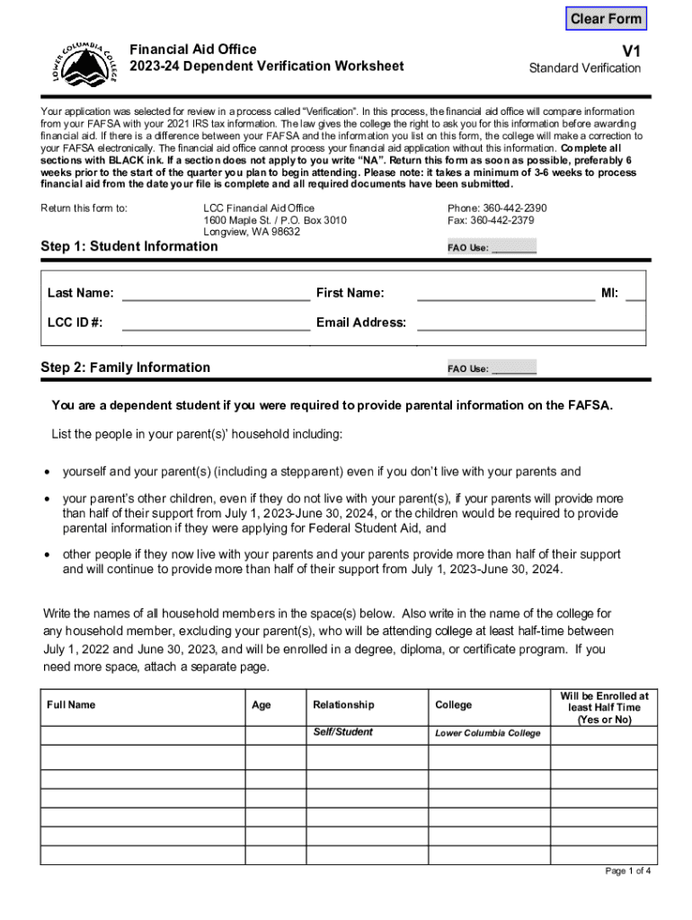 Get the free Financial Aid Office 2023-24 Dependent Verification Worksheet