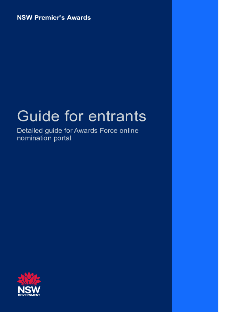NSW Premiers AwardsGuide for entrants Detailed guide for Awards Force online nomination portalContents About the online nomination portal ___ 3 Login details .............................................................................................................
