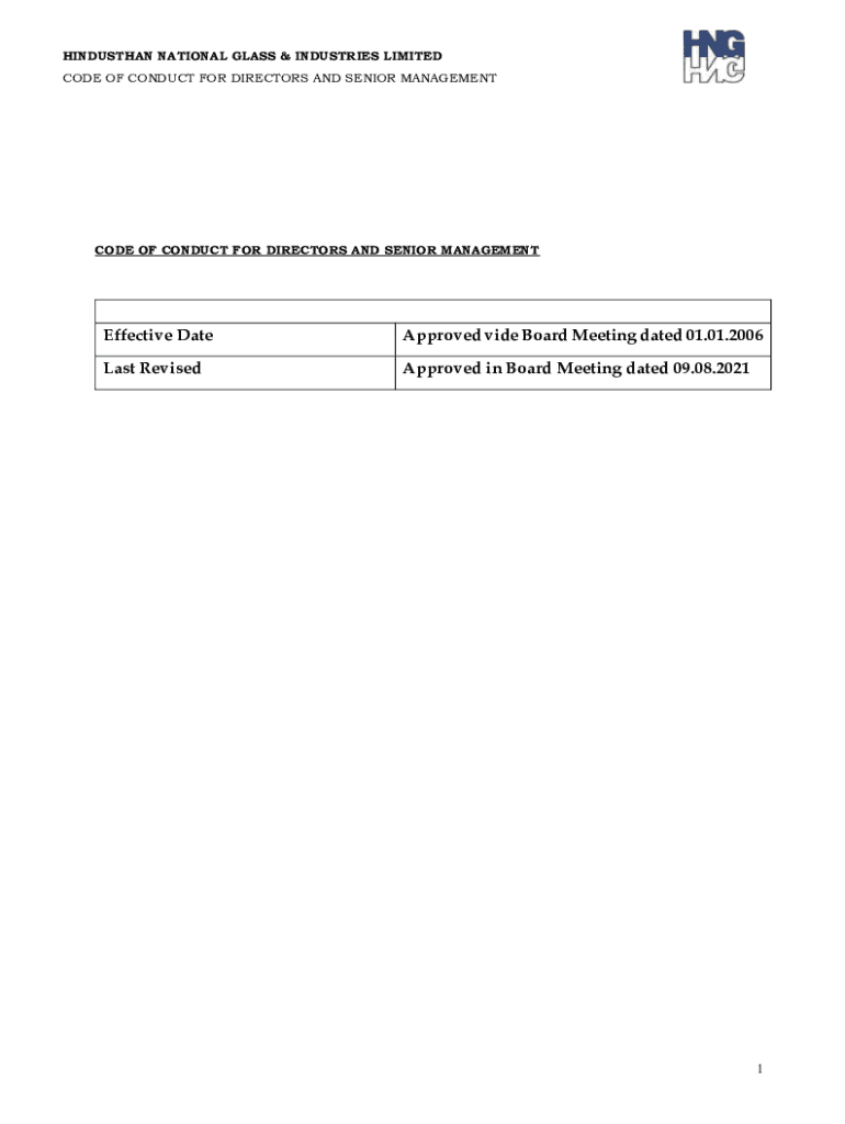 CODE OF CONDUCT FOR DIRECTORS AND SENIOR MANAGEMENTCODE OF CONDUCT FOR DIRECTORS AND SENIOR MANAGEMENTEffective Disapproved vide Board Meeting dated 01.01.2006Last