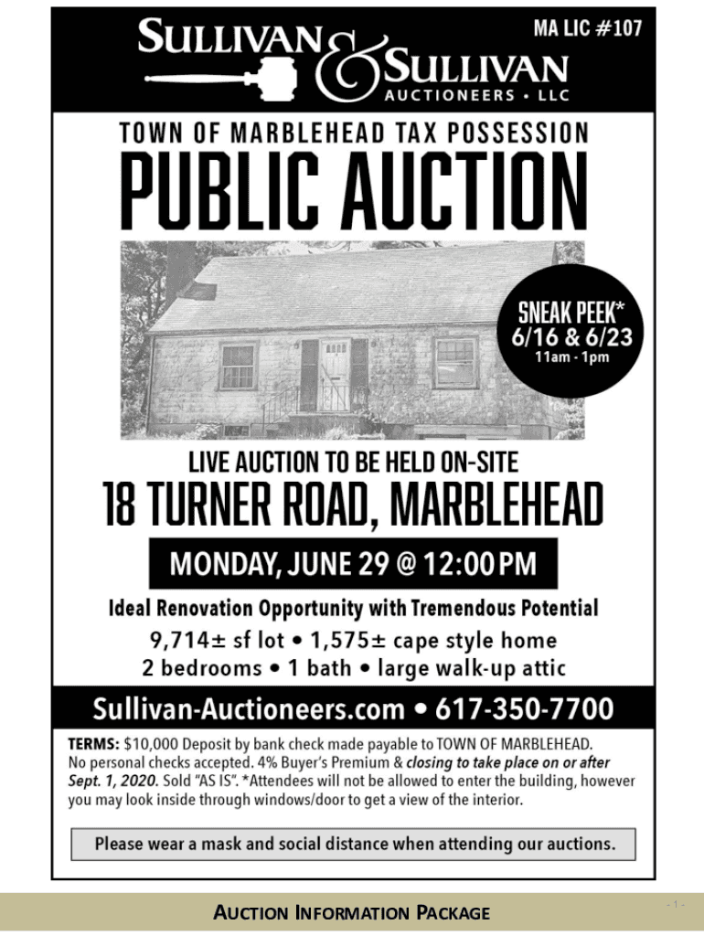 AUCTION INFORMATION PACKAGE1Dear Prospective Bidder :Sullivan & Sullivan Auctioneers, LLC and the Town of Marblehead, MA want to thank you for your interest in our upcoming Tax Possession Auction