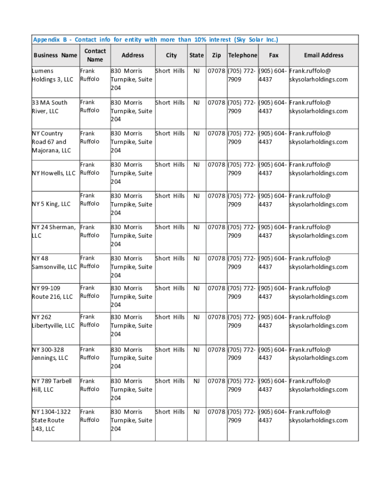 AppendixBContactinfoforentitywithmorethan10%interest(SkySolarInc.)