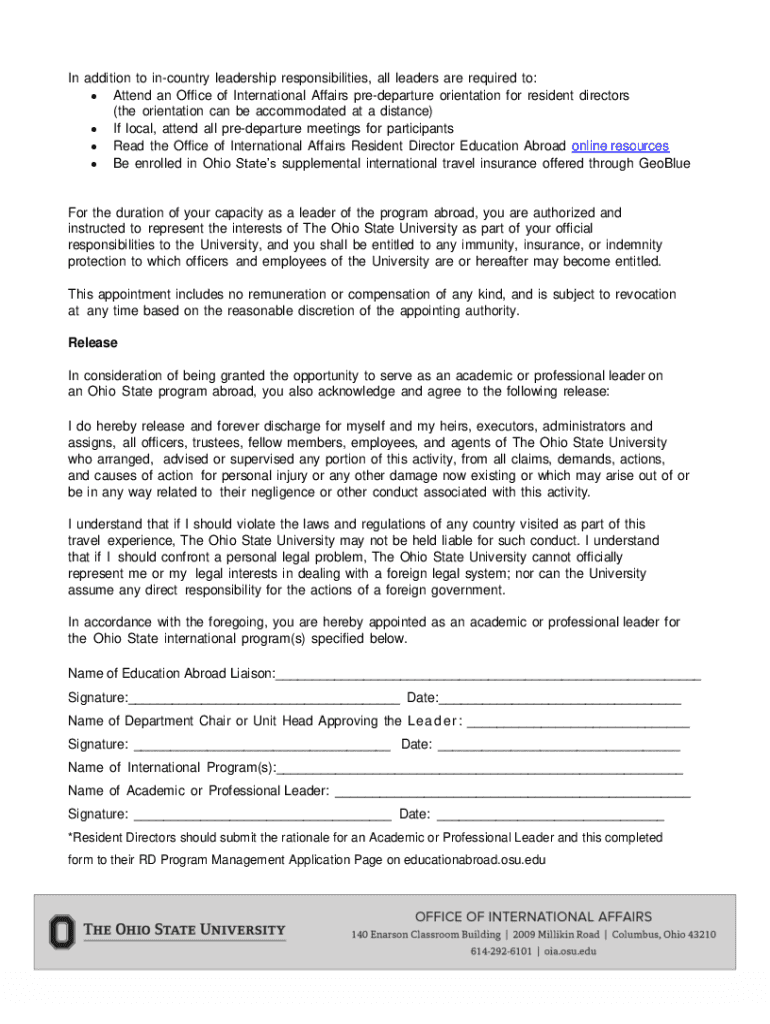 Get the free EDUCATION ABROAD - Academic or Professional Leader - oia osu
