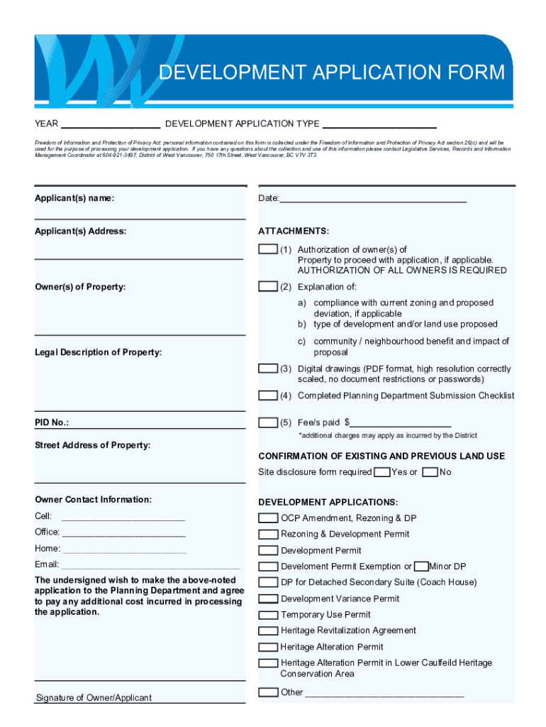 Year development application type can be filled out by providing details of the proposed development project, including the scope, timeline, and impact on the surrounding area.