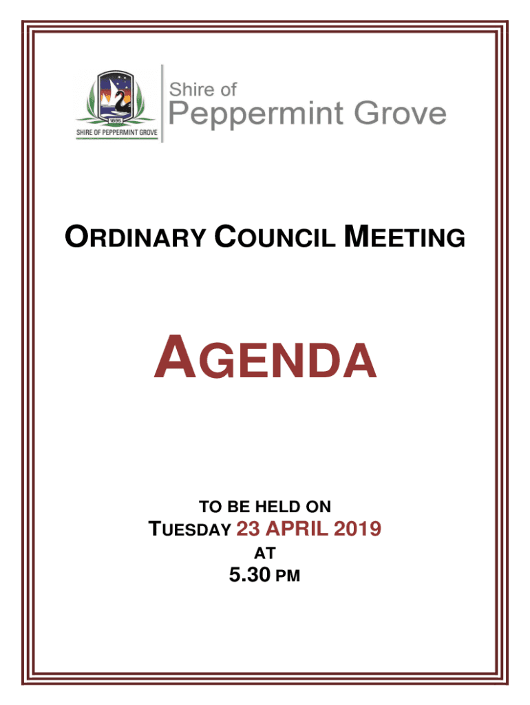 ORDINARY COUNCIL MEETINGAGENDA TO BE HELD ON TUESDAY 23 APRIL 2019 AT 5.30 Ordinary Council Meeting Agenda 23 April 2019NOTICE OF MEETING Dear Councillor It is advised that the COUNCIL MEETING will