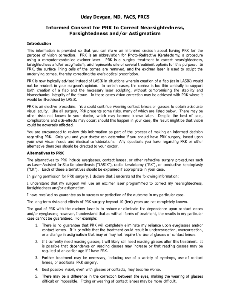 Anyone who is considering undergoing a PRK procedure needs to fill out an informed consent form.
