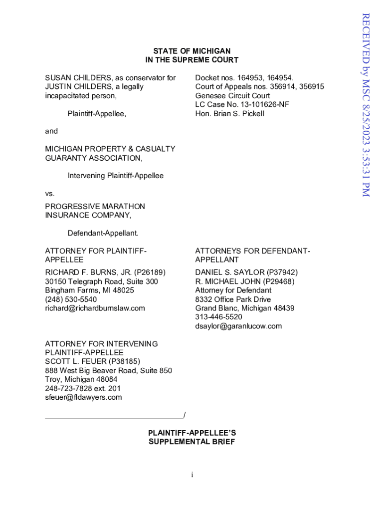 SUSAN CHILLERS, as conservator for JUSTIN CHILLERS, a legally incapacitated person, Docket nos. 164953, 164954. Court of Appeals nos. 356914, 356915 Geneses Circuit Court LC Case No. 13101626NF Hon.