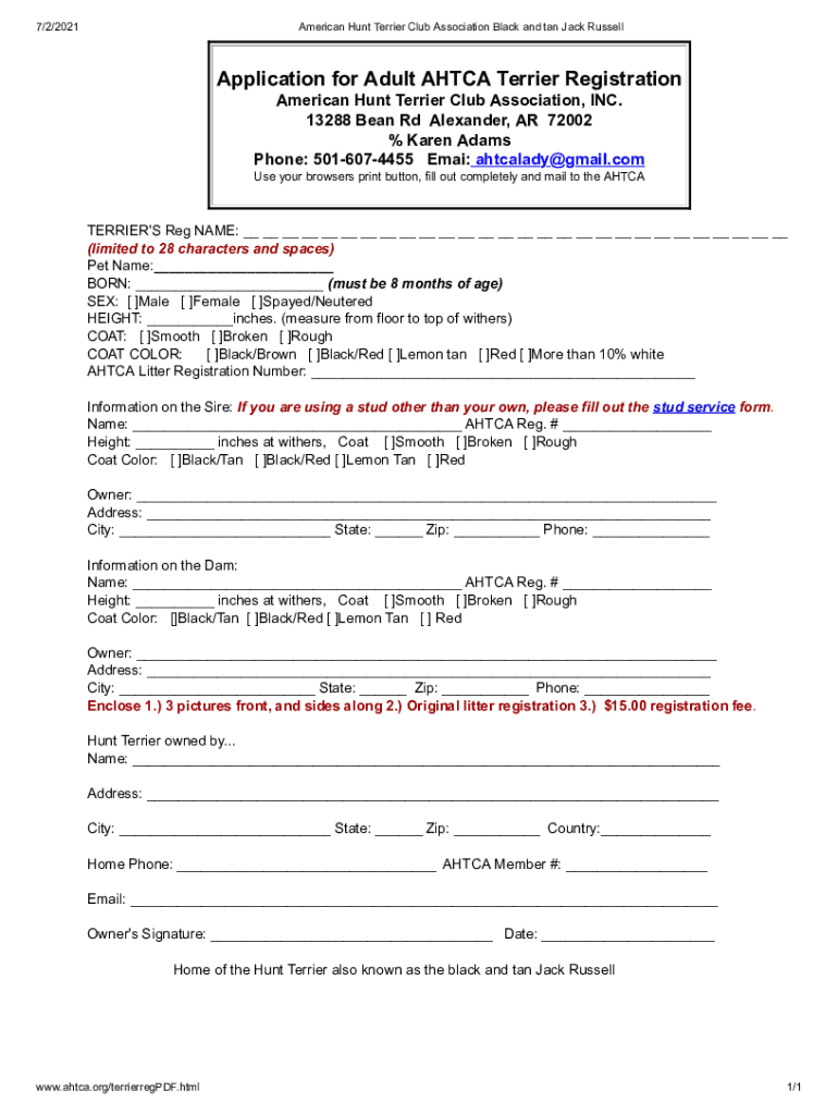 Get the free Application for Adult AHTCA Terrier Registration
