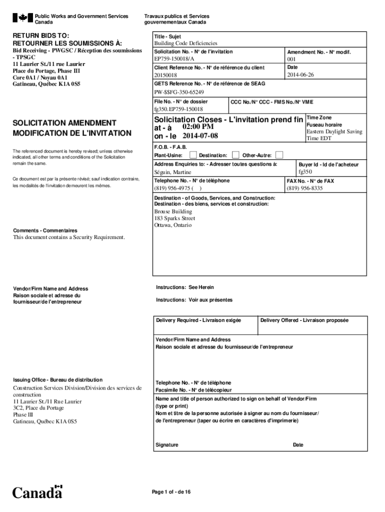Public Works and Government Services CanadaTravaux public set Services gouvernementaux Canada11RETURN BIDS TO: RETURNER LES COMMISSIONS :Title Outbid Receiving PW GSC / Reception DES sou missions