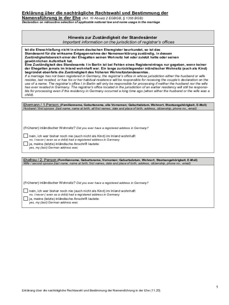 Declaration on retroactive selection of applicable national law and name usage in