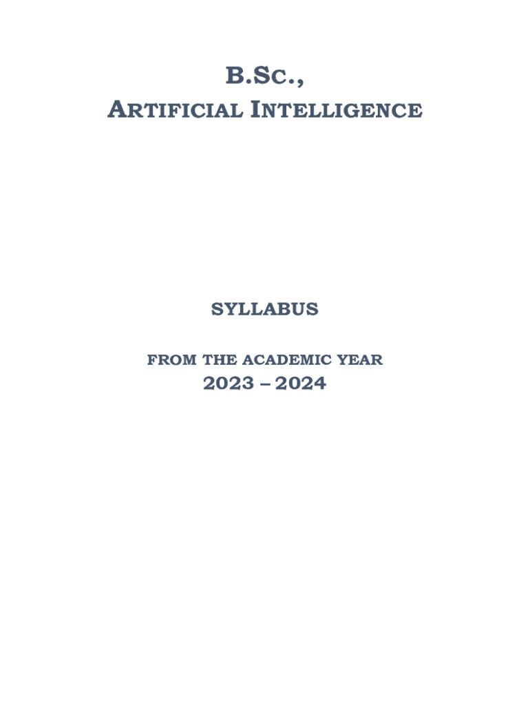 B.SC., ARTIFICIAL INTELLIGENCESYLLABUS FROM THE ACADEMIC YEAR2023 20241. Introduction B.Sc.Artificial Intelligence or AI, is a branch of computer science that deals with building smart machines that