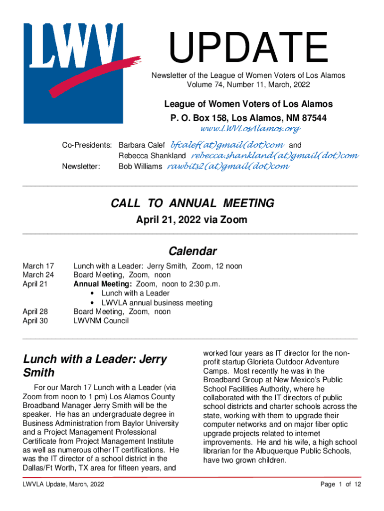 Volume 74, Number 11, March, 2022League of Women Voters of Los Alamos