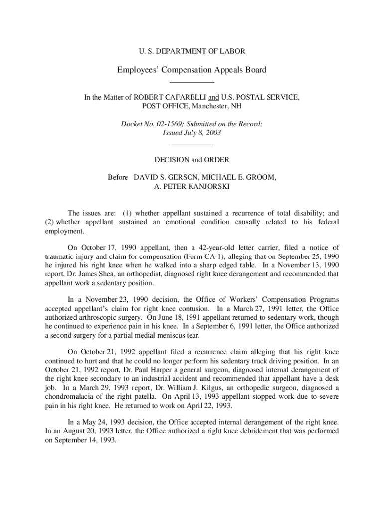 Get the free 02-1569: ROBERT CAFARELLI and U.S. POSTAL SERVICE...