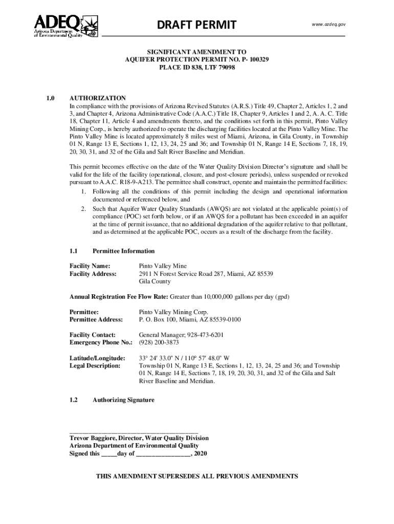DRAFT Permit.added.southern Regional Office 400 West Congress Street Suite 433 Tucson, AZ 85701 AUTHORIZATION 6286733 In compliance with the provisions of Arizona Revised Statutes (A.R.S.) Title 49,