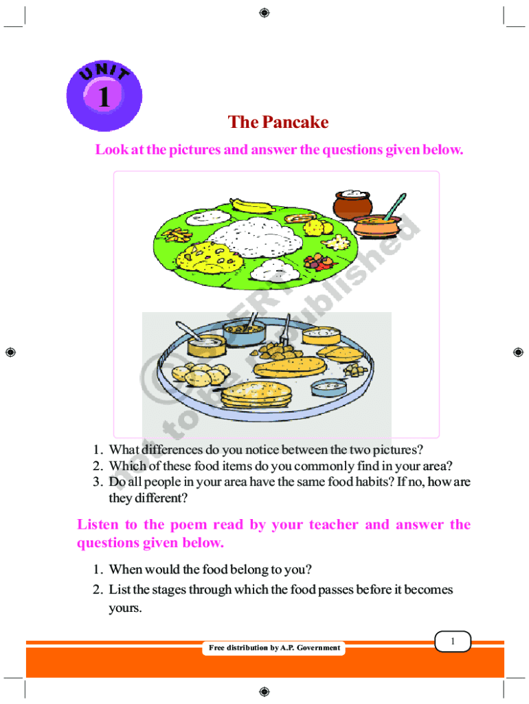 1 The Pancake Look at the pictures and answer the questions given below.1. What differences do you notice between the two pictures? 2. Which of these food items do you commonly find in your area?
