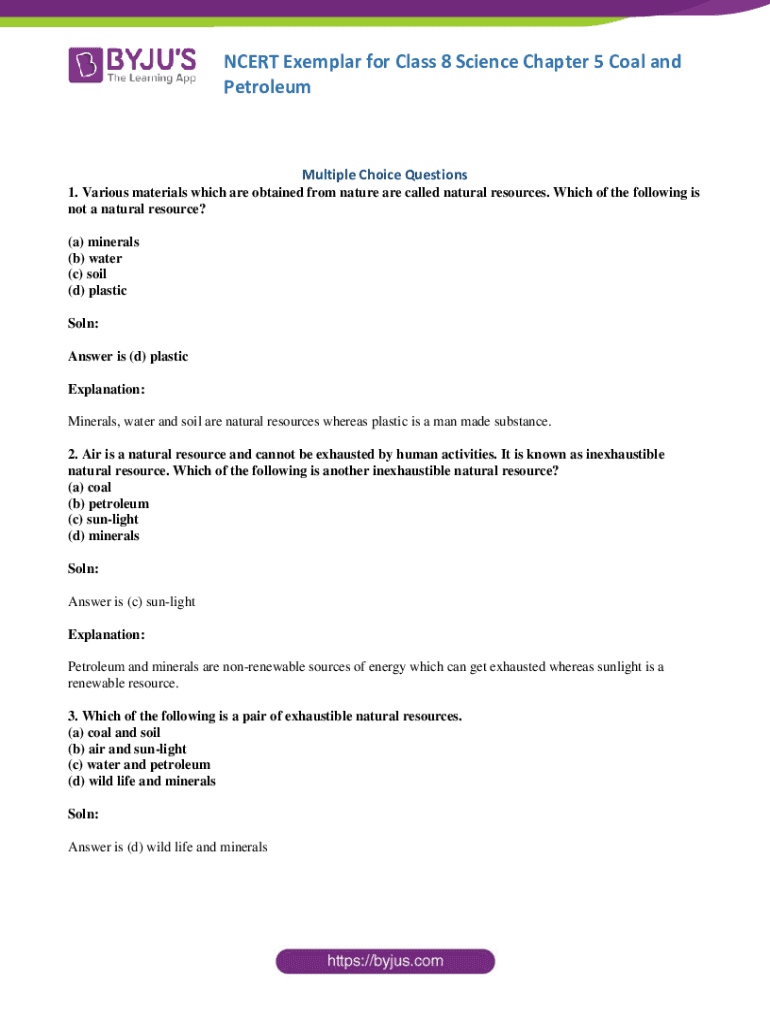 CERT Exemplar for Class 8 Science Chapter 5 Coal and PetroleumMultiple Choice Questions 1. Various materials which are obtained from nature are called natural resources. Which of the following is