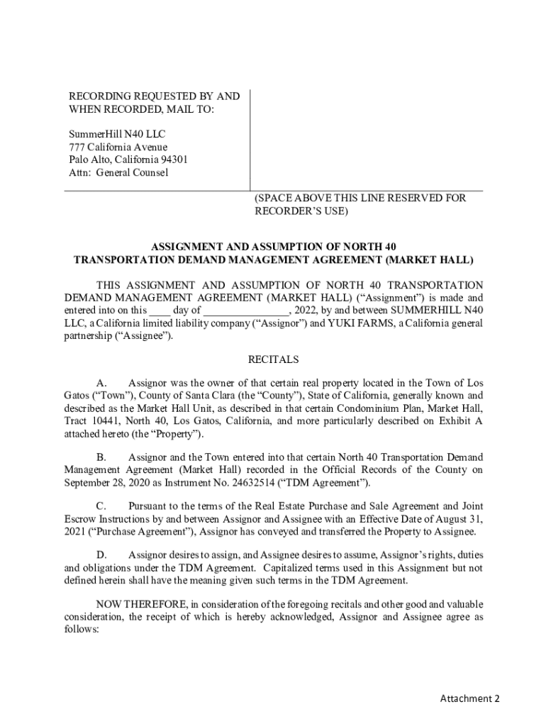RECORDING REQUESTED BY AND WHEN RECORDED, MAIL TO: Summer Hill N40 LLC 777 California Avenue Palo Alto, California 94301 Attn: General Counsel (SPACE ABOVE THIS LINE RESERVED FOR RECORDERS USE) ASSIGNMENT