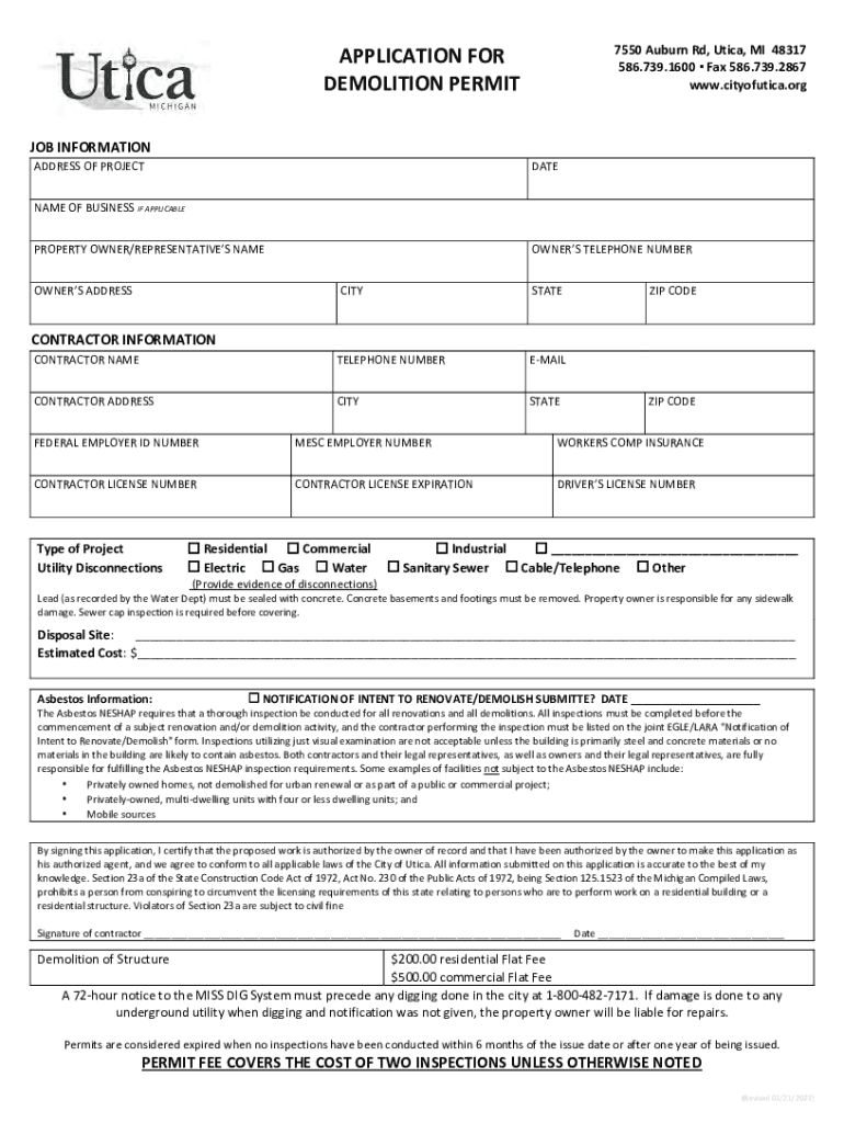 Obtain the notification of asbestos demolition form from the appropriate regulatory agency.